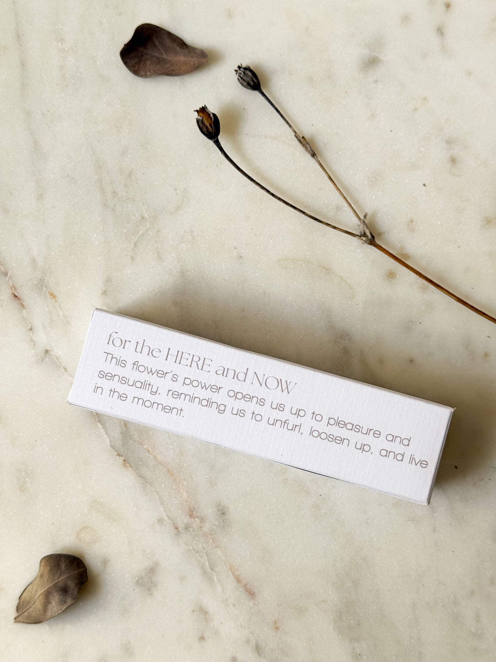 This beautiful flower’s power flows through its funnel-shaped blossom and ruffled lobes, reminding us to unfurl a bit, loosen up, and to live in the moment. It is recommended to those who tend to resist the here and now and for those who feel stuck or afraid to try something new. Schedules and rituals are wonderful but can become problematic when they become so rigid that you feel you are missing out on living. This softening + opening essence allows us to see and experience our wild and free spirit in our everyday actions.