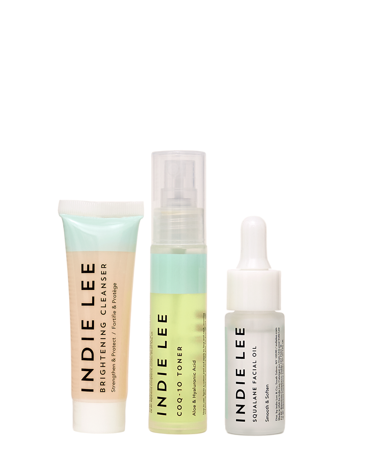 The perfect starter kit for the skincare obsessed. This travel-friendly set includes a full clean skincare ritual with our three best-sellers, Brightening Cleanser, CoQ-10 Toner, and Squalane Facial Oil. Great for Indie Lee first-timers or jet setting veterans. Great for all skin types, including oily, dry, and sensitive.
