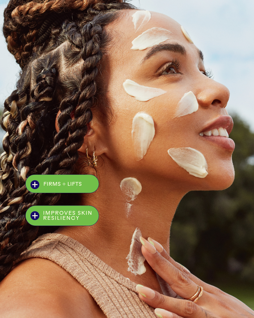 Go beyond ordinary moisturizers with our revolutionary neck + face cream! This ultra-rich, deeply hydrating cream works to smooth and lift, while providing much-needed TLC for the delicate neck area. Antioxidant-rich Goji Berry Plant Stem Cell helps improve firmness and smoothness on your neck + face. Upcycled Pomegranate (a by-product of the juicing industry) delivers brightening and moisturizing benefits. With regular use, your skin will have a smoother, lifted appearance.