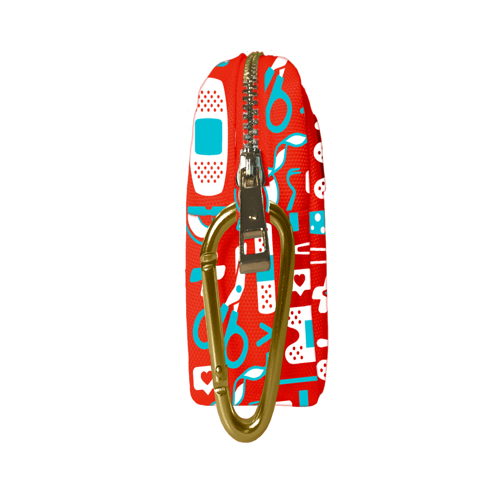 First Aid Kit for on the go  * Small case but fully loaded with 60 Premium First Aid items * Includes Metal Tweezers, Wipes, Ointments, Assorted Bandages, and much more (see below for full list) * Carabiner attaches easily to backpack, stroller, or small purse * All Contents are 100% Latex-Free * HSA/FSA eligible * Size: 4.5" x 3.75" x 1.75" * Due to the small size, we could not add extra pockets (that make our GoKit and SuperKit so organized)