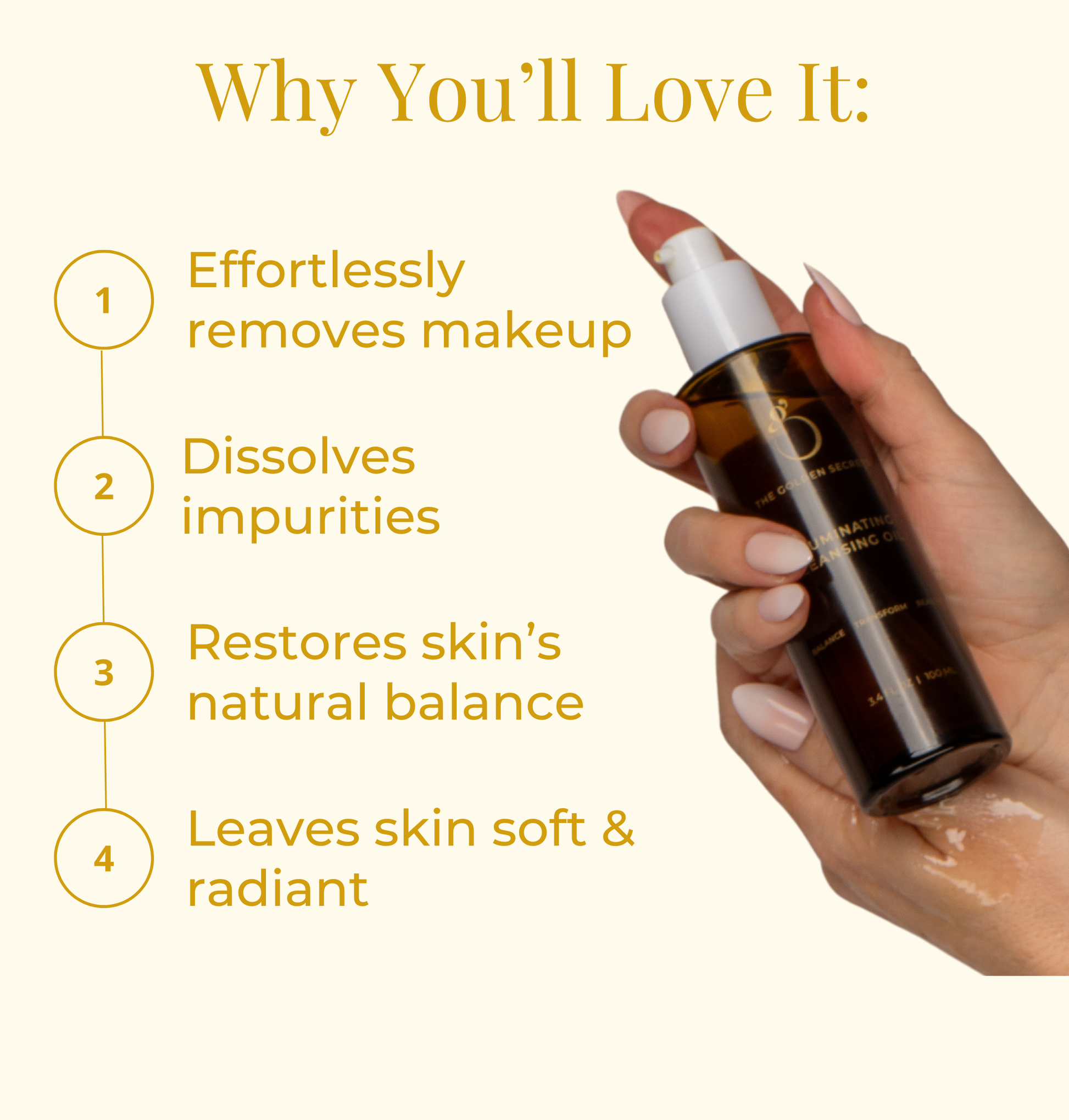 "Throughout my life, I have discovered that all the women I admire for their beautiful skin practice oil cleansing. When I started this practice, I couldn't believe how my skin transformed. I was like, 'Wow, the beauty industry really tried to trick us.' The very thing I was avoiding helped more than anything. My skin is virtually poreless because of this special oil." - Jesse Golden, TGS founder