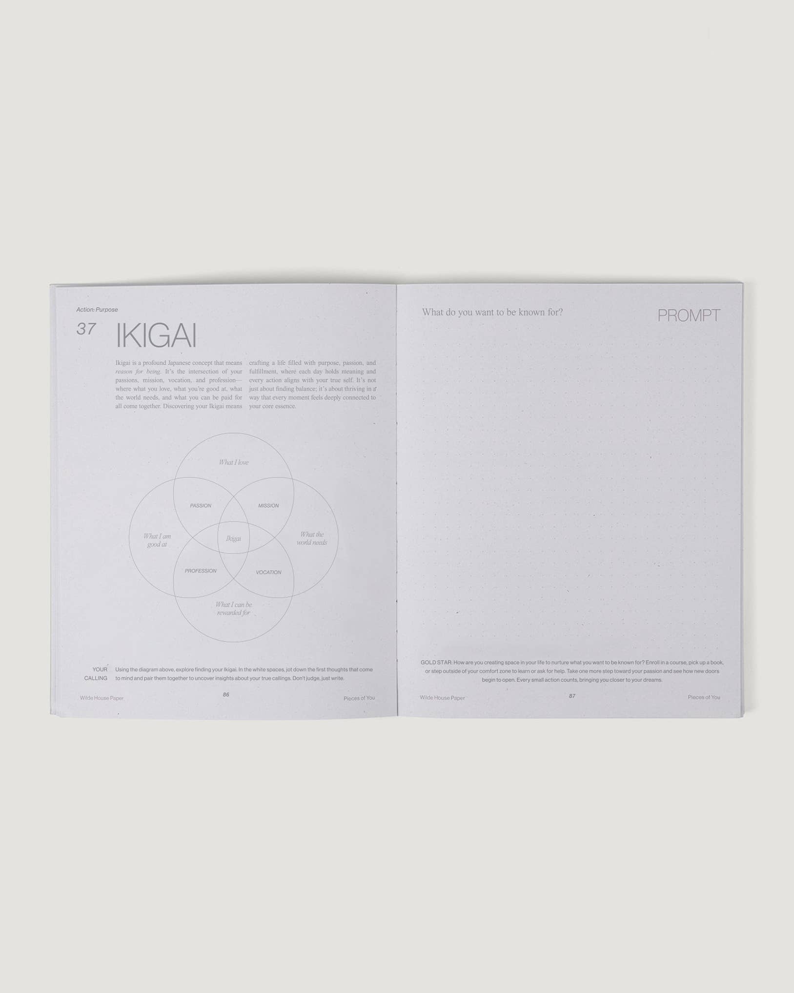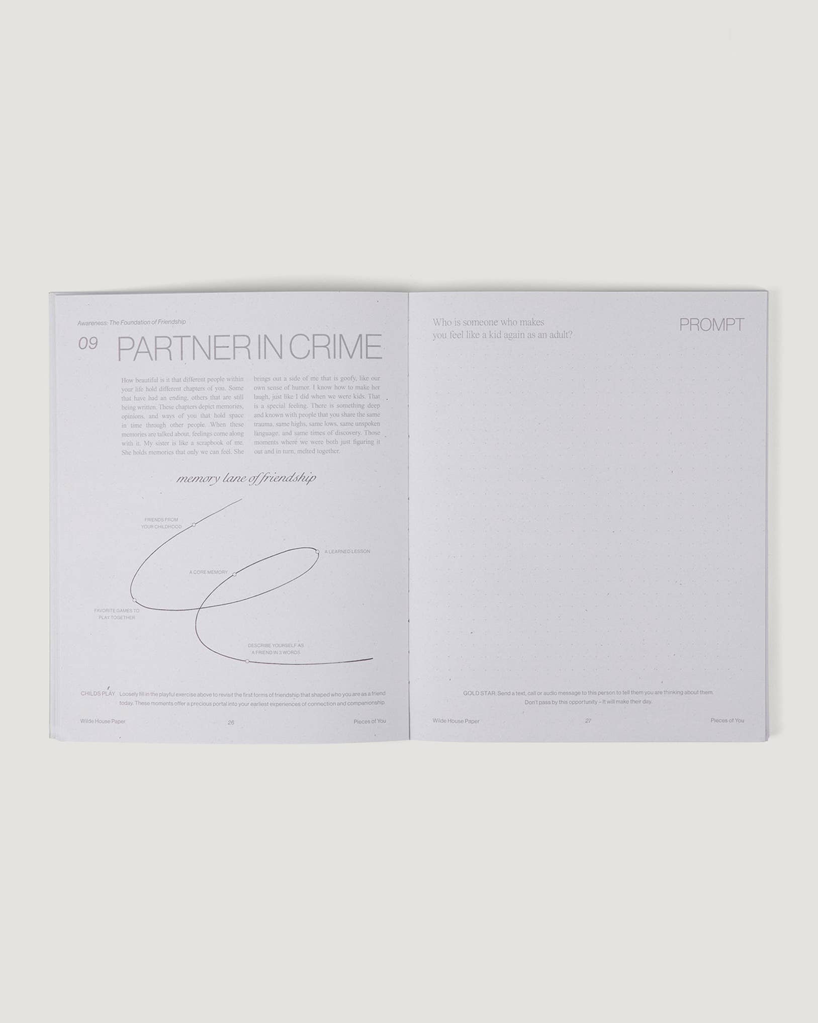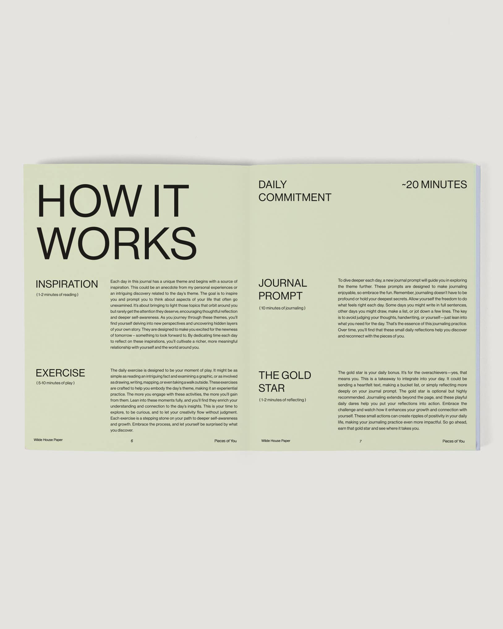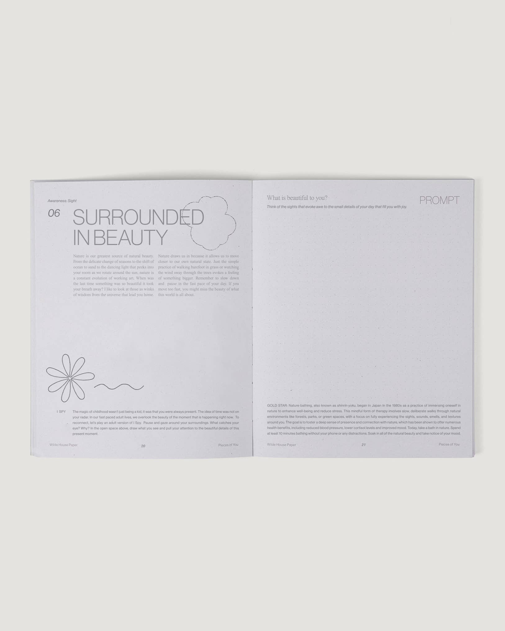 – Each day is guided by a reimagined childhood theme that includes inspiration, an interactive exercise, a journal prompt, and gold star activity to take into your day.