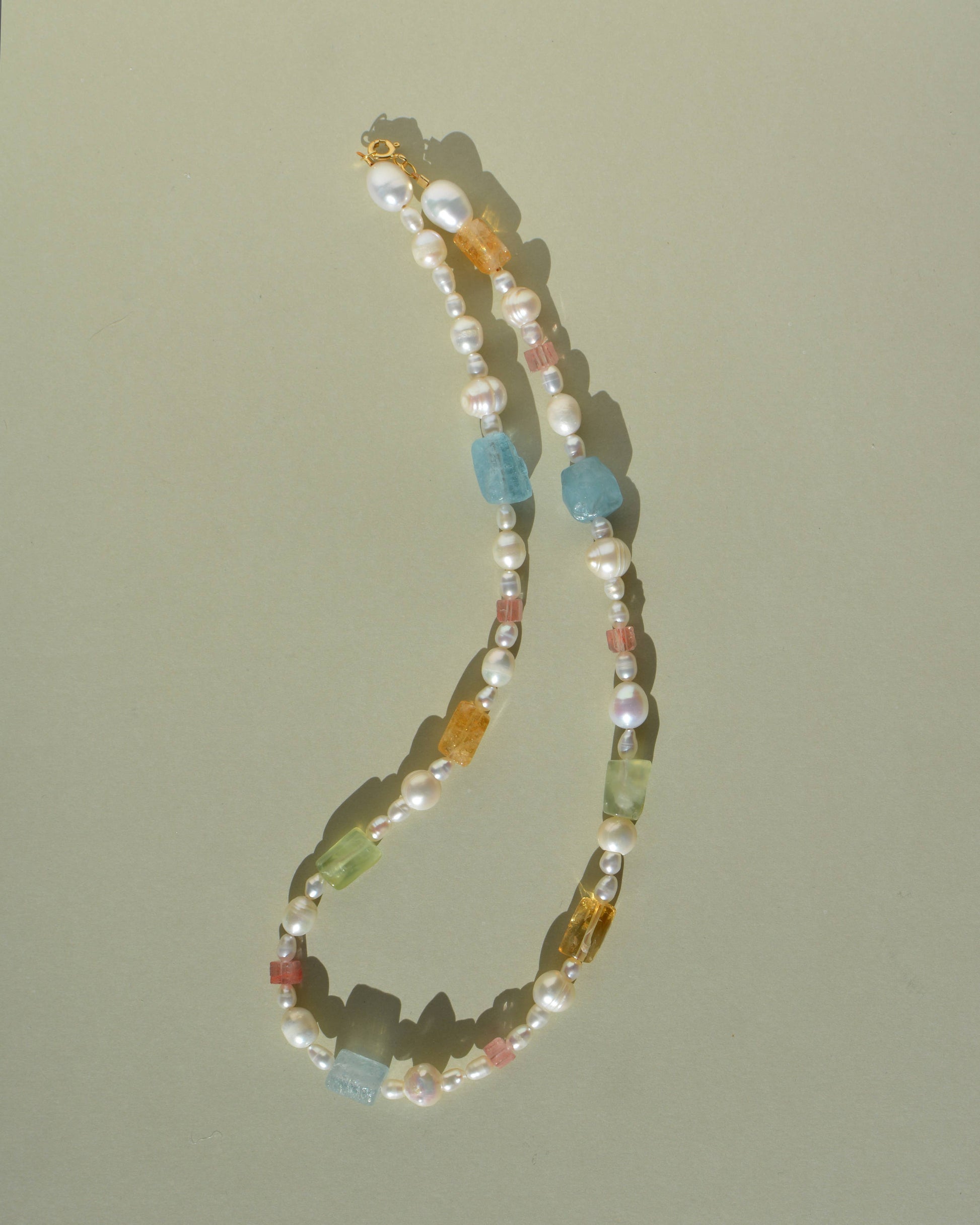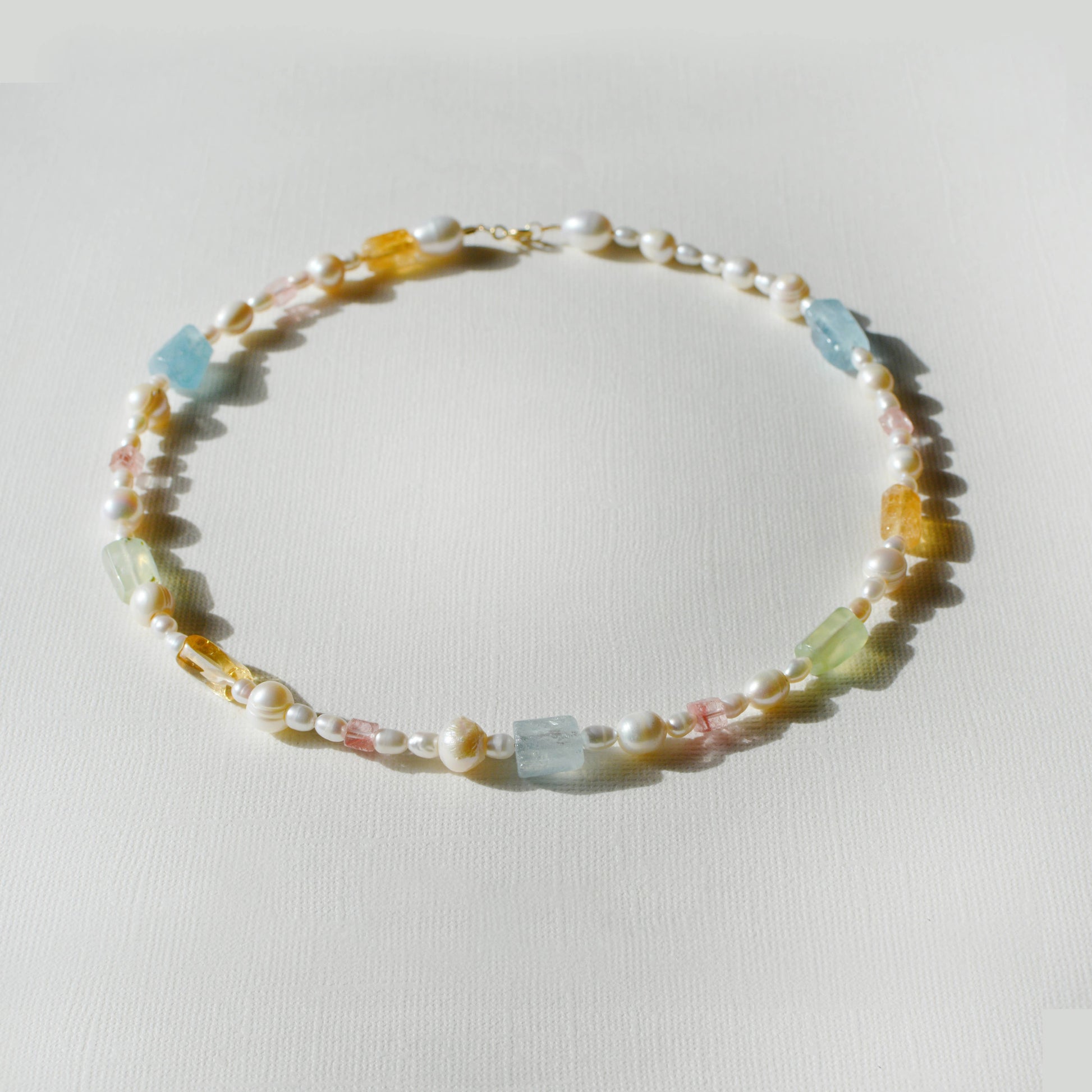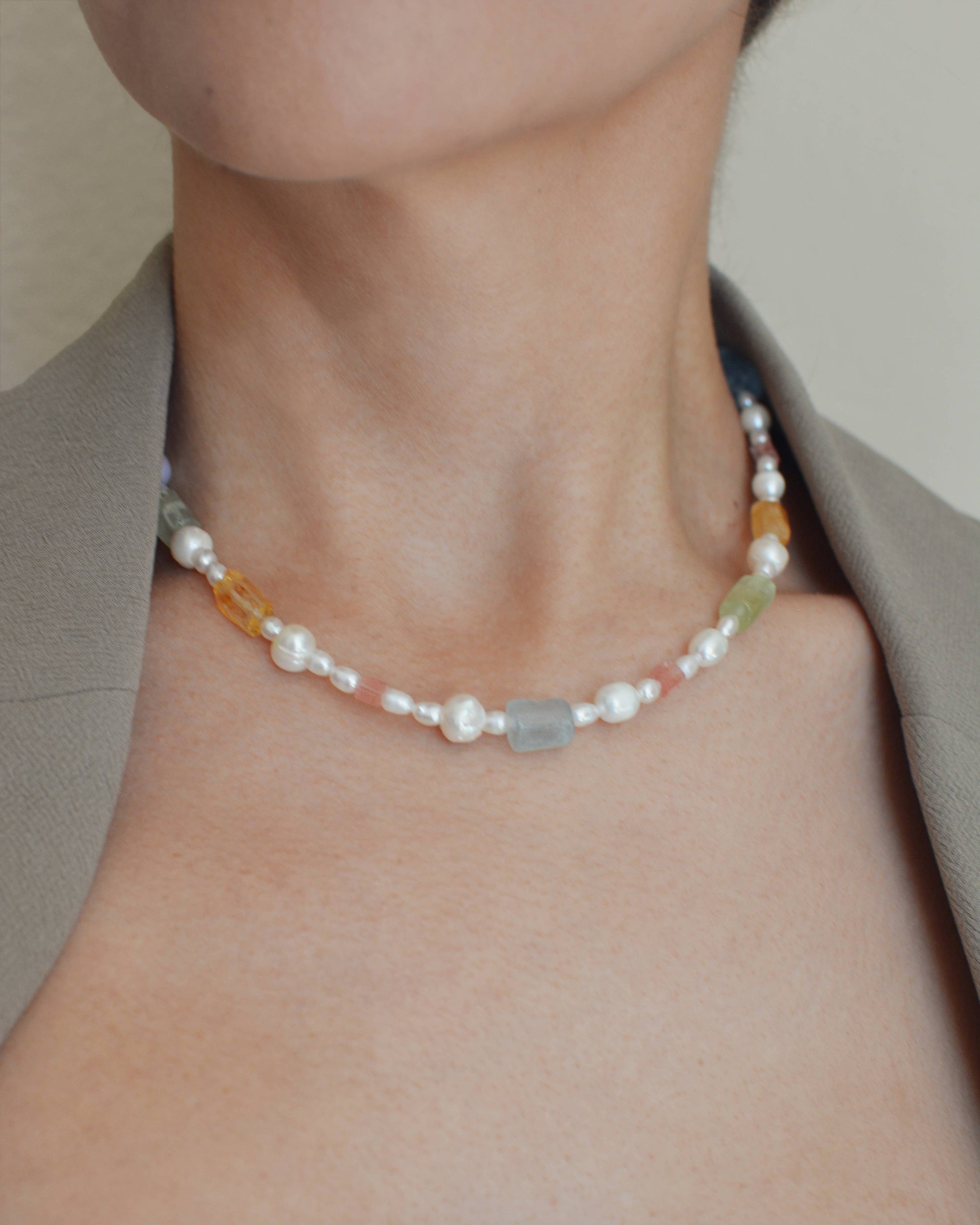 Candy colored raw stone pearl necklace