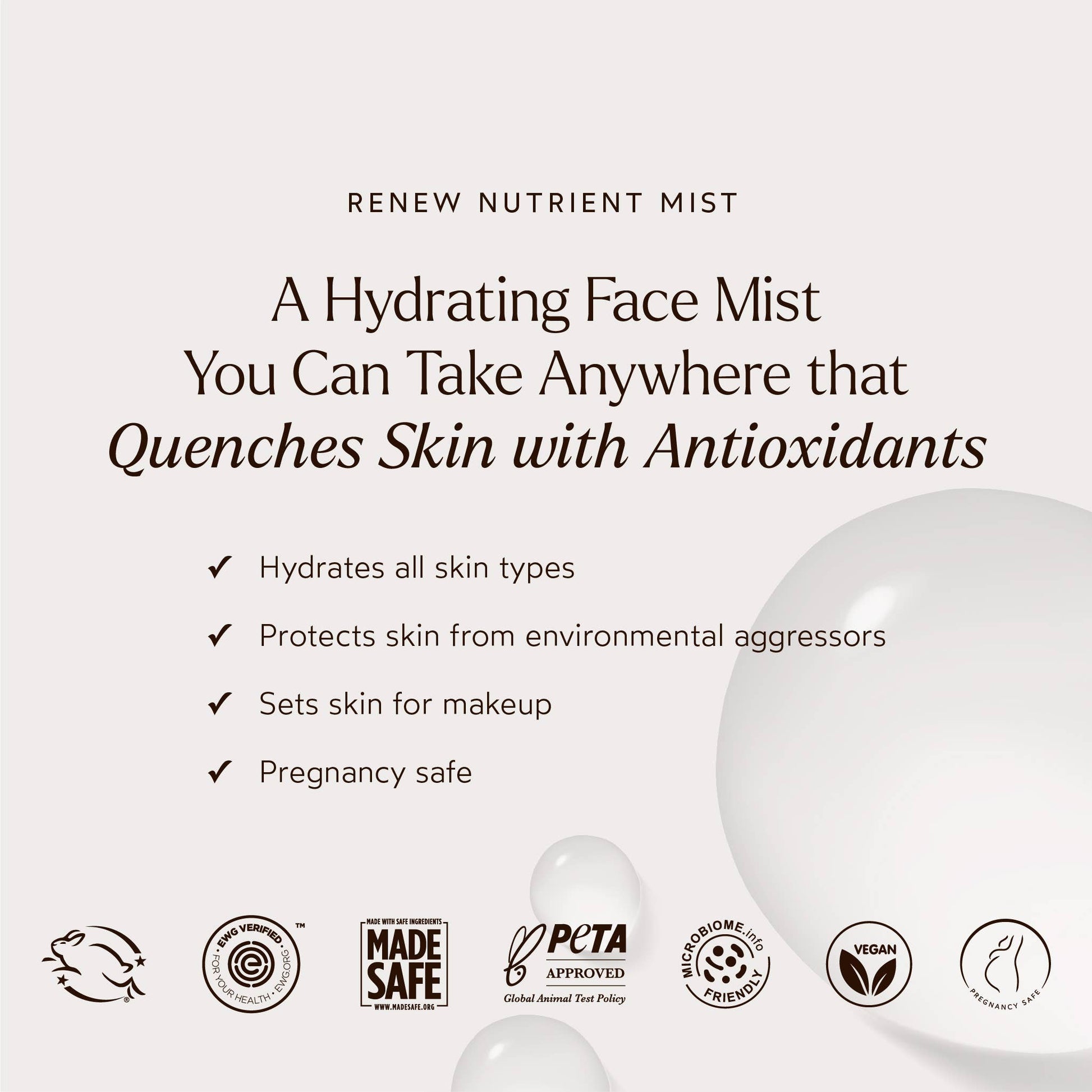 Like a daily multi-vitamin for your skin, this ultra-hydrating face mist quenches and refreshes skin with a burst of antioxidants. And as an added bonus, it also sets makeup. Naturally scented with jasmine, neroli, and rose—as subtle and luxurious as nature itself. Hypoallergenic.