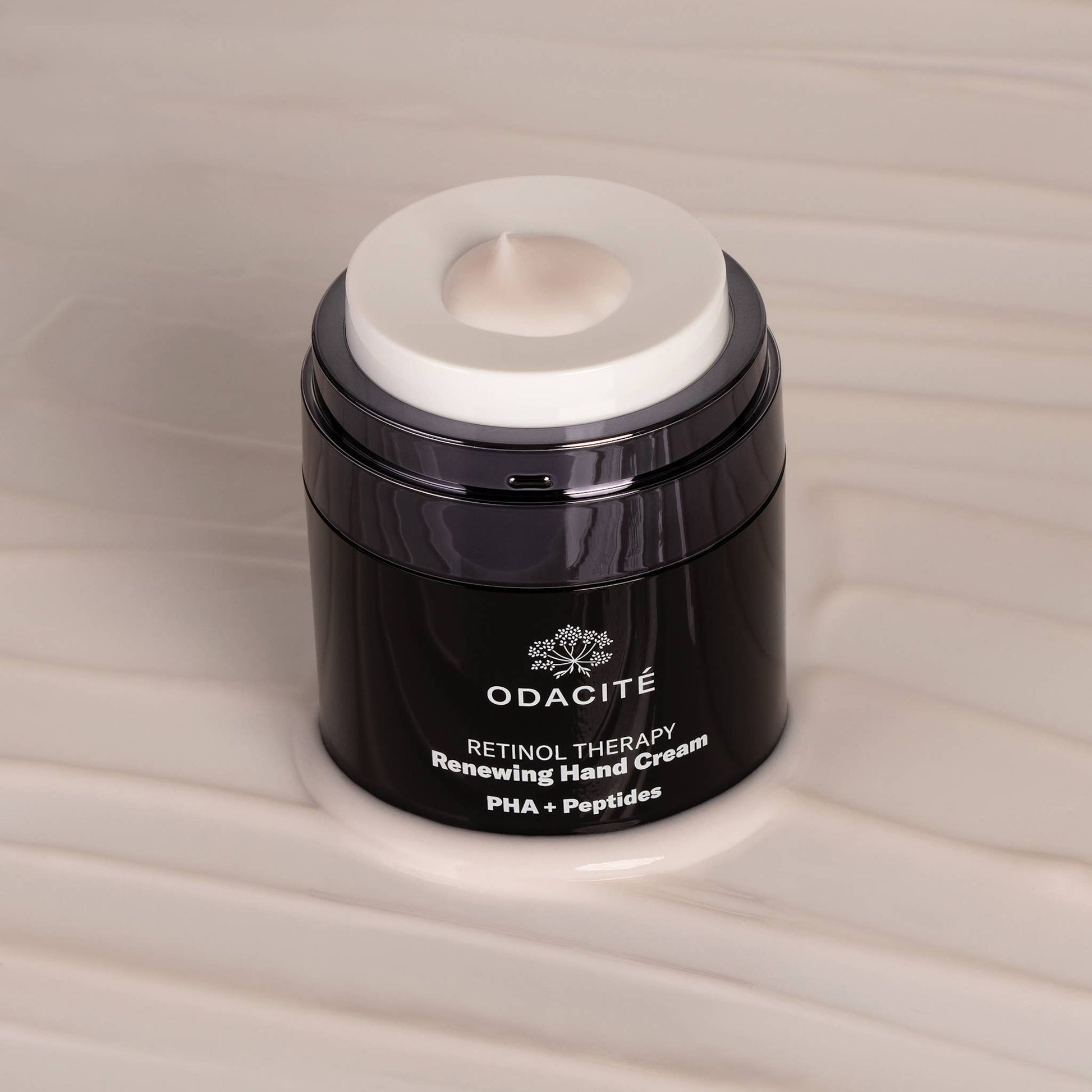 A luxurious multi-active hand cream specially formulated to support your skin's nocturnal repair process. Powered by renewing Retinol & Retinoid, gently exfoliating PHAs, firming Peptides, brightening Niacinamide, soothing Oatmeal, and nourishing Avocado Oil & Botanical Butters.