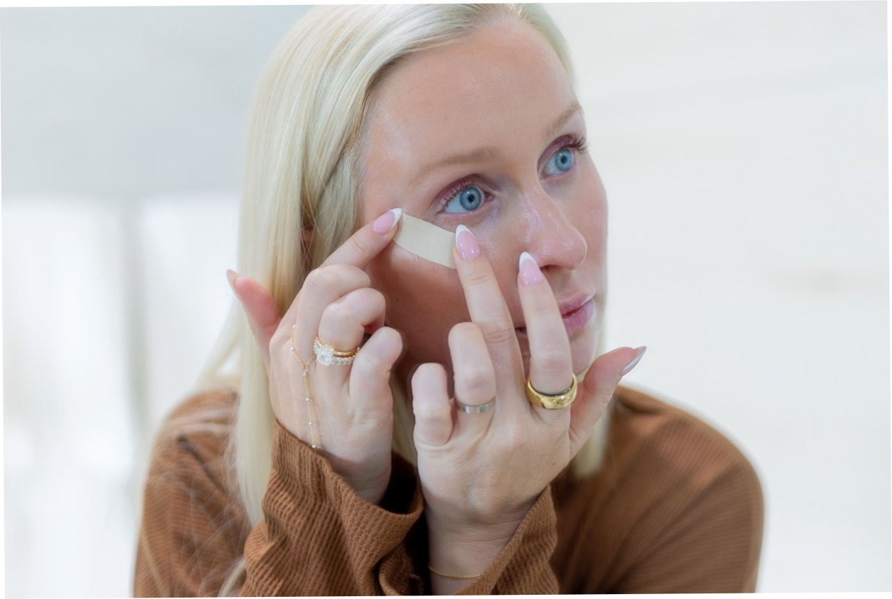 Overnight face tape that gently lifts and helps skin stay smooth while you sleep. Hypoallergenic cotton‑blend with skincare‑safe adhesive—no residue, no tugging. Latex‑free, silicone‑free.