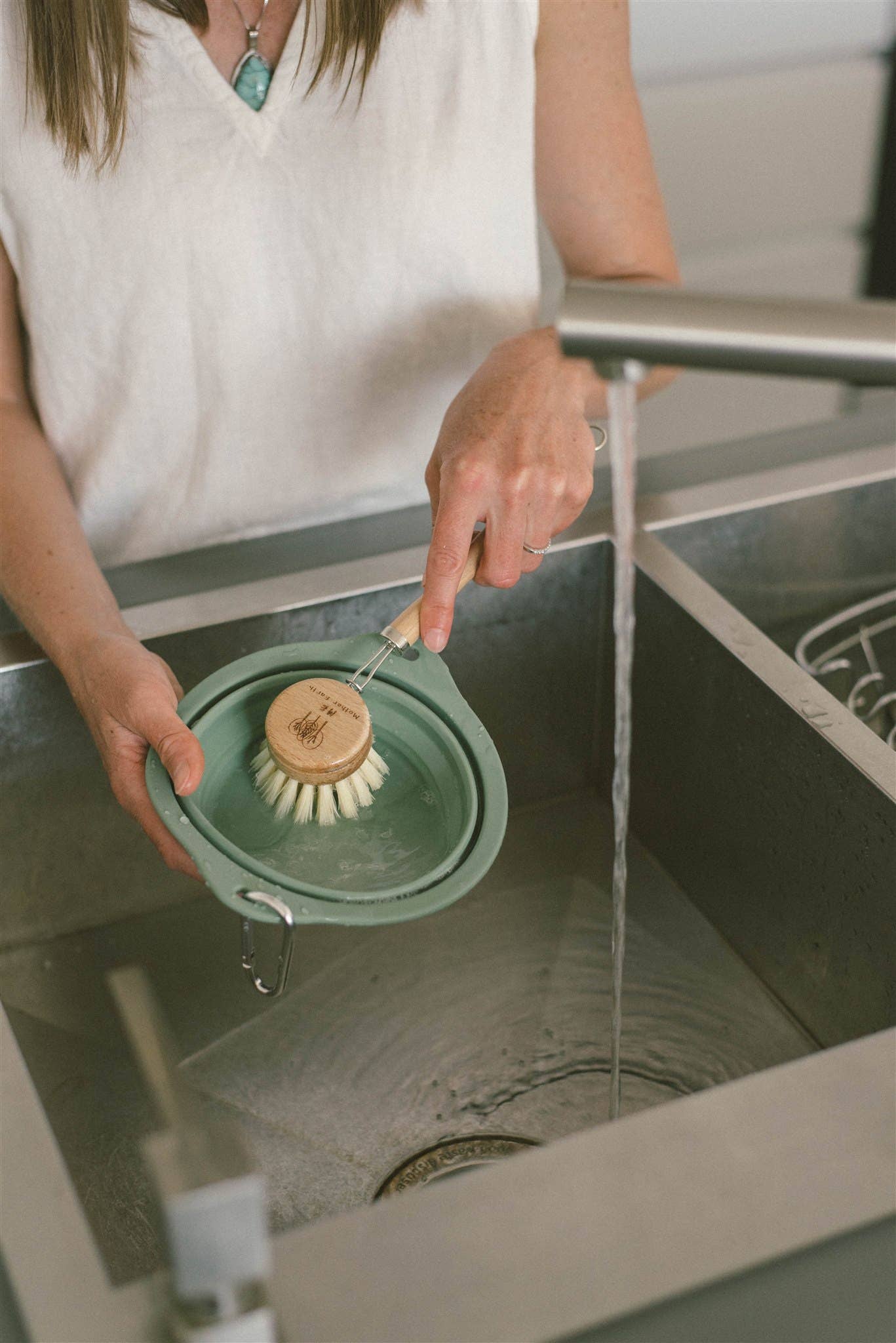 Swap plastic dish brushes in the kitchen with our 100% biodegradable beechwood and sisal fiber dish brush. The head is removable and replaceable. Our kitchen brush has a beechwood handle with sisal fiber (agave plant) bristles. Minimally fastened together with a metal wire & metal loop to hang to dry.