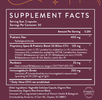 Your all-in-one support for gut, vaginal, skin, and immune health with clinically-studied pre, pro, and postbiotics (+ a toxin remover)* Reduces IBS Symptoms & supports bowel regularity* Maintains healthy vaginal pH which may help with odor* Maintains a healthy vaginal yeast balance* Boosts overall immunity & supports respiratory health* Supports skin health & reduces wrinkles* 50 billion CFUs for microbiome support*